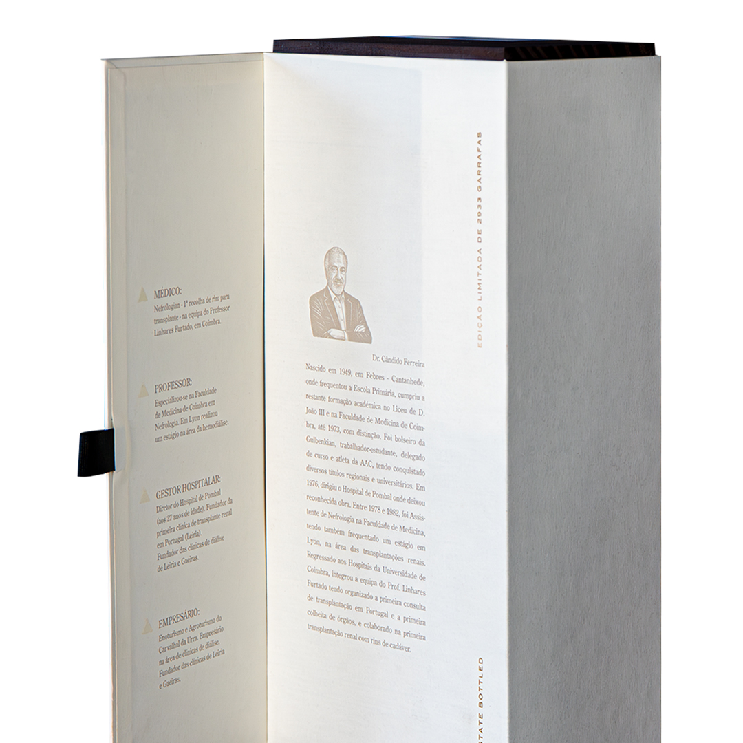 TEST NOTES: Opaque red colour, deep and concentrated, revealing from the first glance the intensity that marks this tribute to the owner of the house: Dr Cândido Ferreira. On the nose, the characteristic aromas of Alicante Bouschet stand out, with notes of blackberry, ripe plum and subtle hints of balsamic. Ageing in French oak barrels adds elegant layers of spice, smoke and roasting nuances, harmoniously integrating with the expressive fruit that the Serra de São Mamede provides so well. On the palate, it is intense, raw and vigorous, with firm acidity and dense, striking tannins that promise remarkable evolution in the bottle. It's a wine to keep for a long time, where the marriage between the aromatic fruit and the character of the wood will gain complexity and balance over time, revealing the full potential of the variety and the terroir.